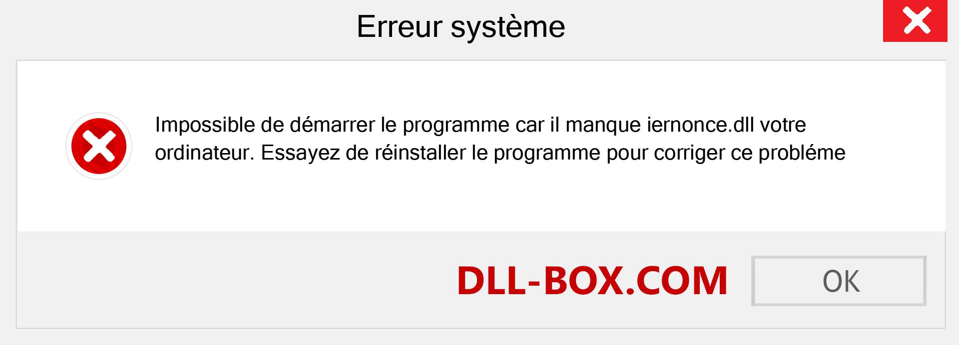 1. Le programme ne peut pas démarrer car iernonce.dll est absent de votre ordinateur. Essayez de réinstaller le programme pour résoudre ce problème.